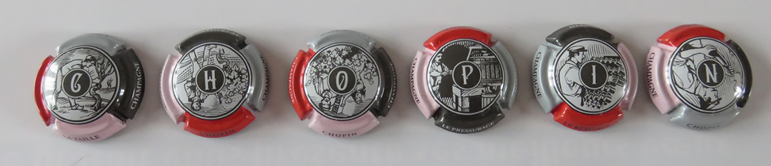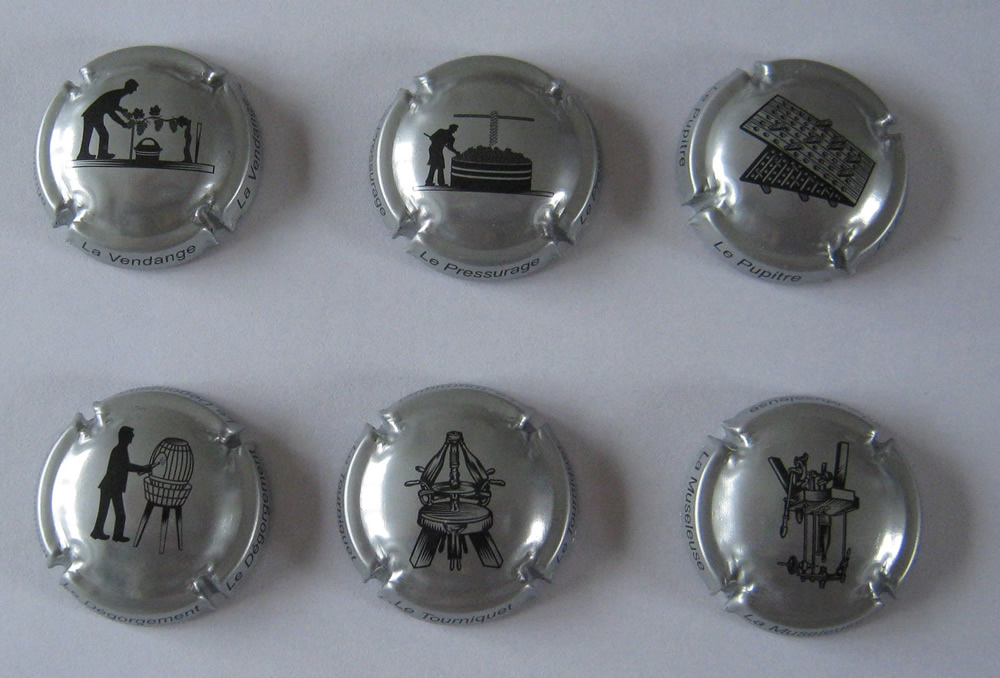 La série de 6 muselets de champagne (750A 750E) Réf. M015